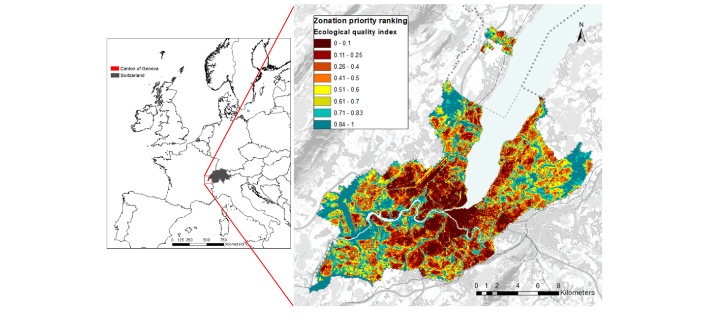 Illustration de la méthode permettant qualifier les zones du territoire en fonction de la biodiversité et...