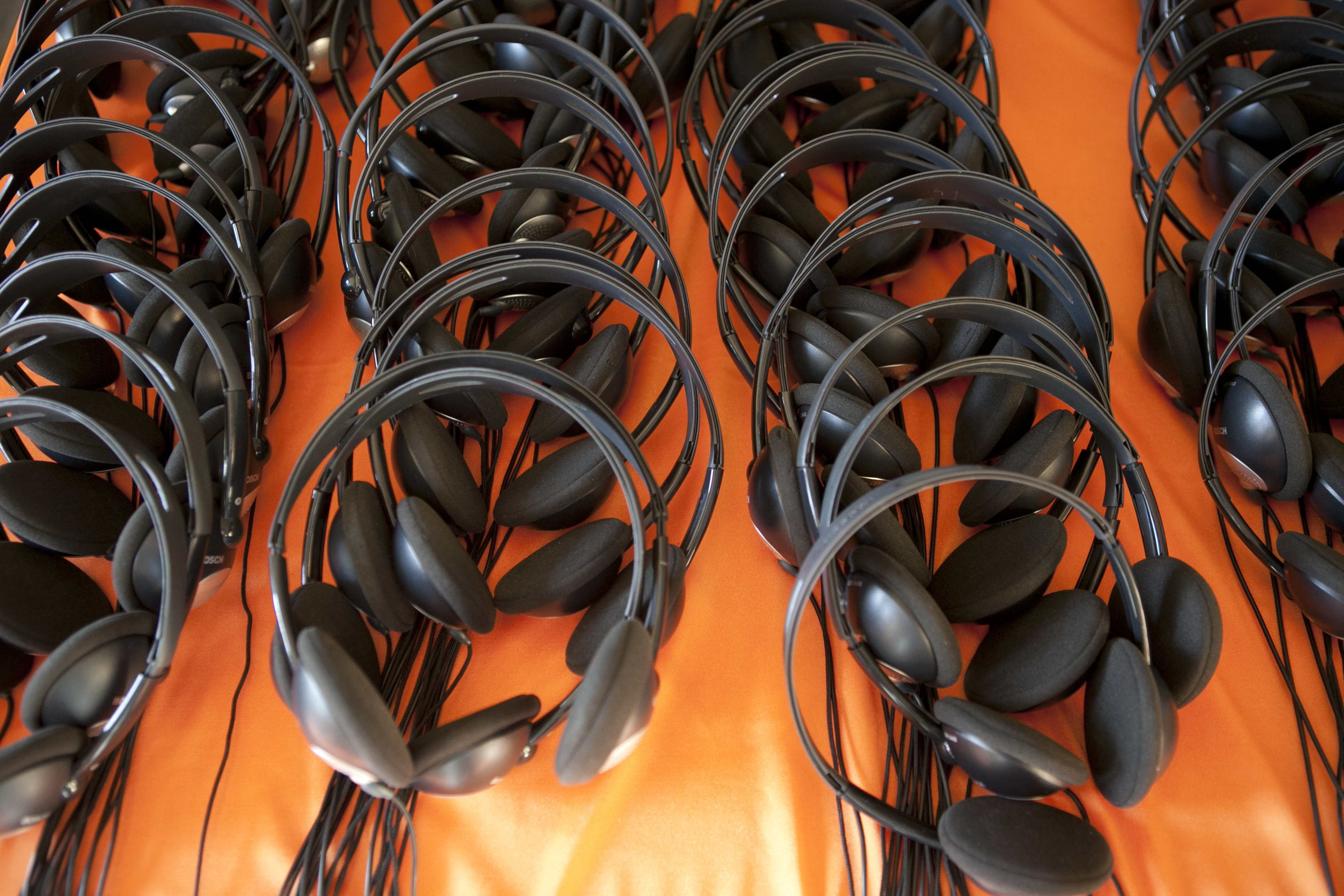 Casques d'écoute pour l'interprétation simultanée de conférences.