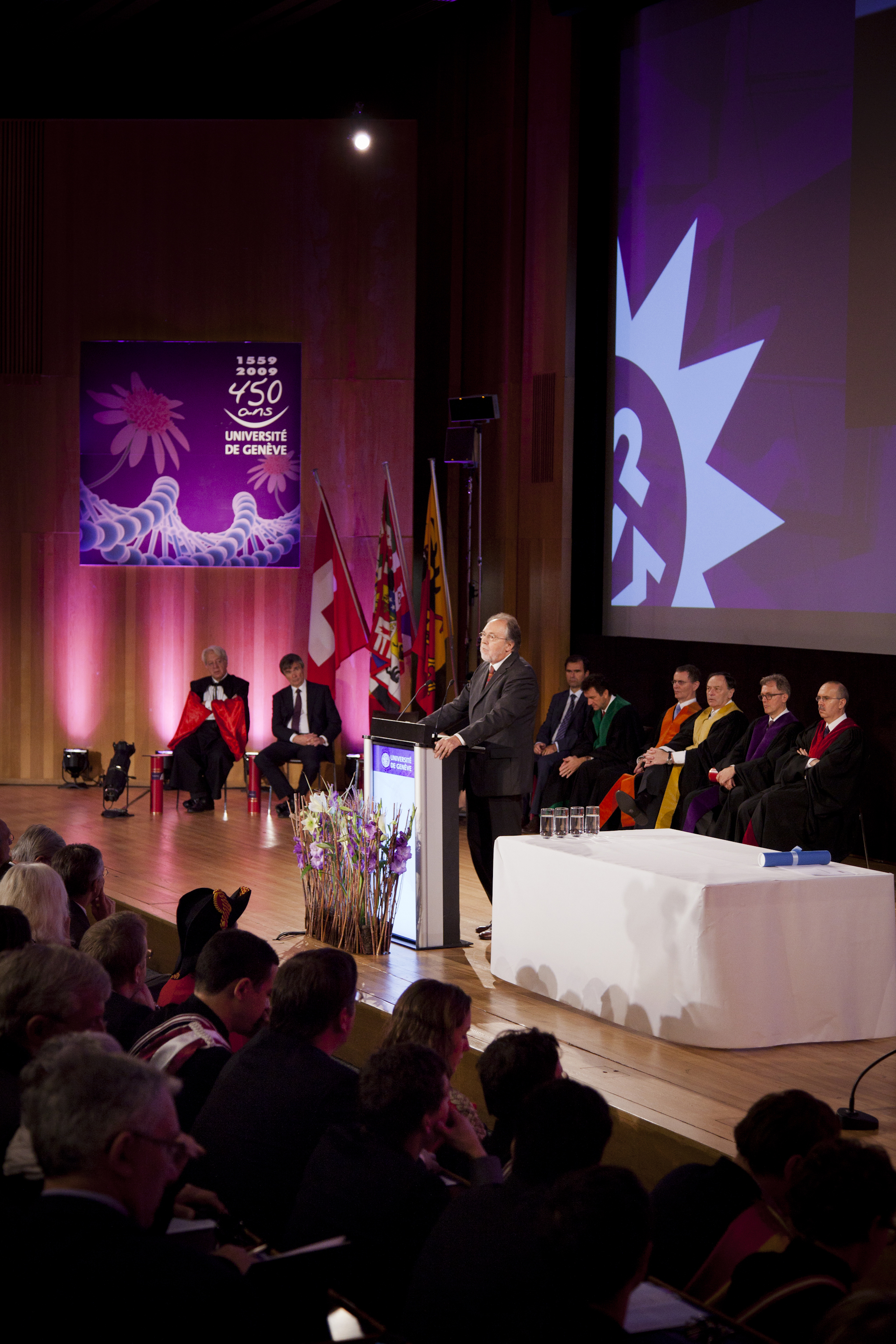 Cérémonie du Dies academicus 2011 à Uni Dufour. Allocution de Dick Marty, ancien président de la Commission des droits de l'homme au Conseil de l'Europe et docteur honoris causa de l'UNIGE.
