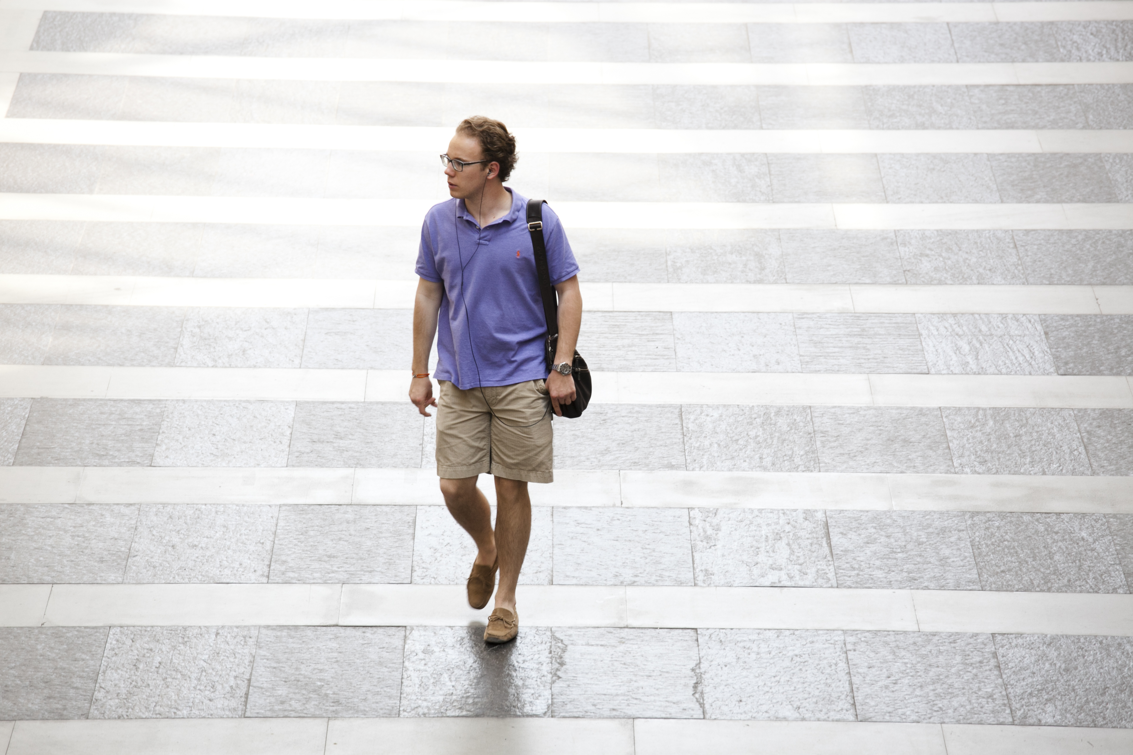 Etudiant dans la hall central d'Uni Mail.