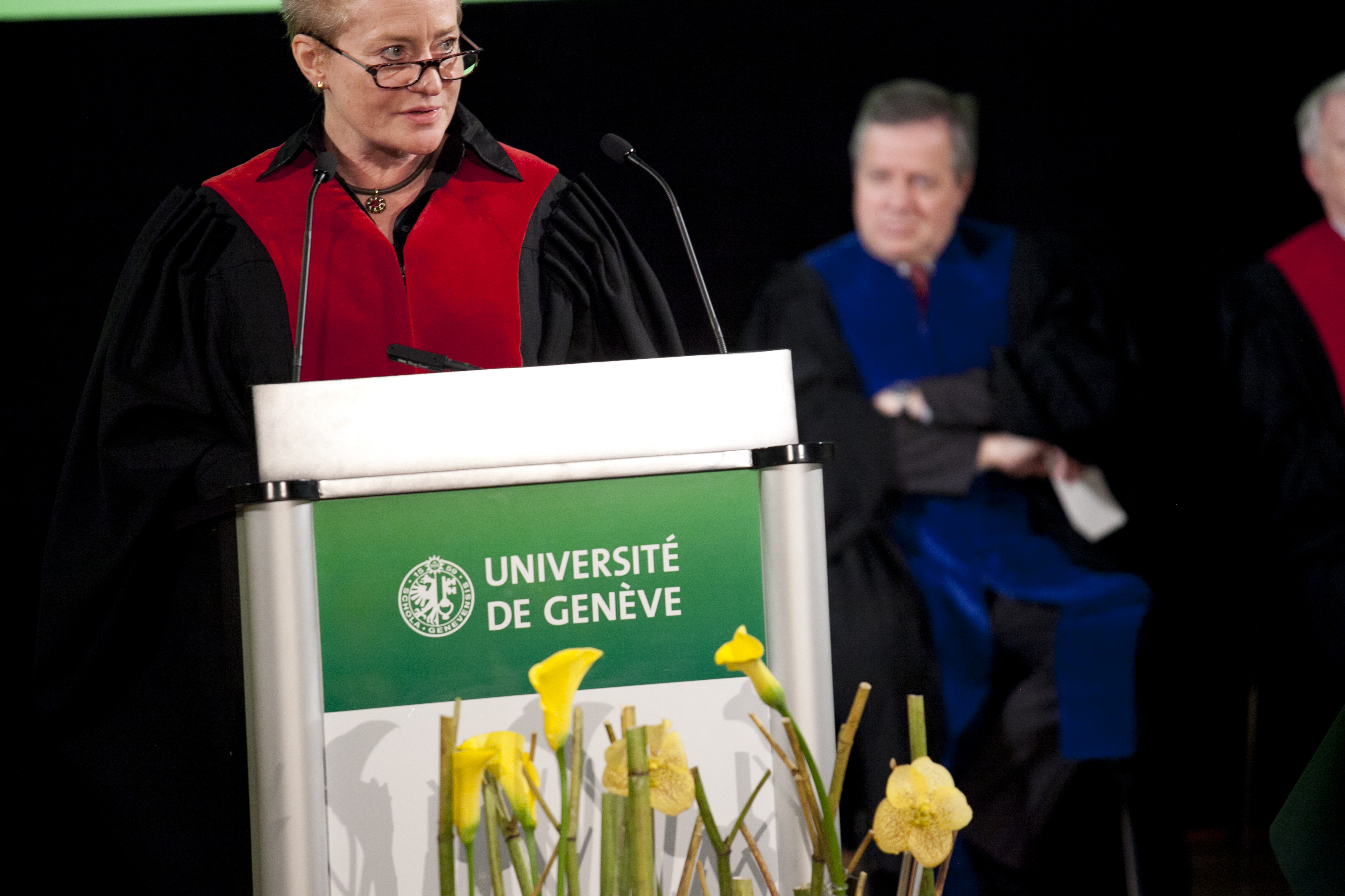Journée officielle de l'Alma mater, cérémonie du Dies academicus 2012 sur le thème le savoir au service des droits humains à Uni Dufour. Discours de la doyenne de la Faculté de Droit, Christine Chappuis.