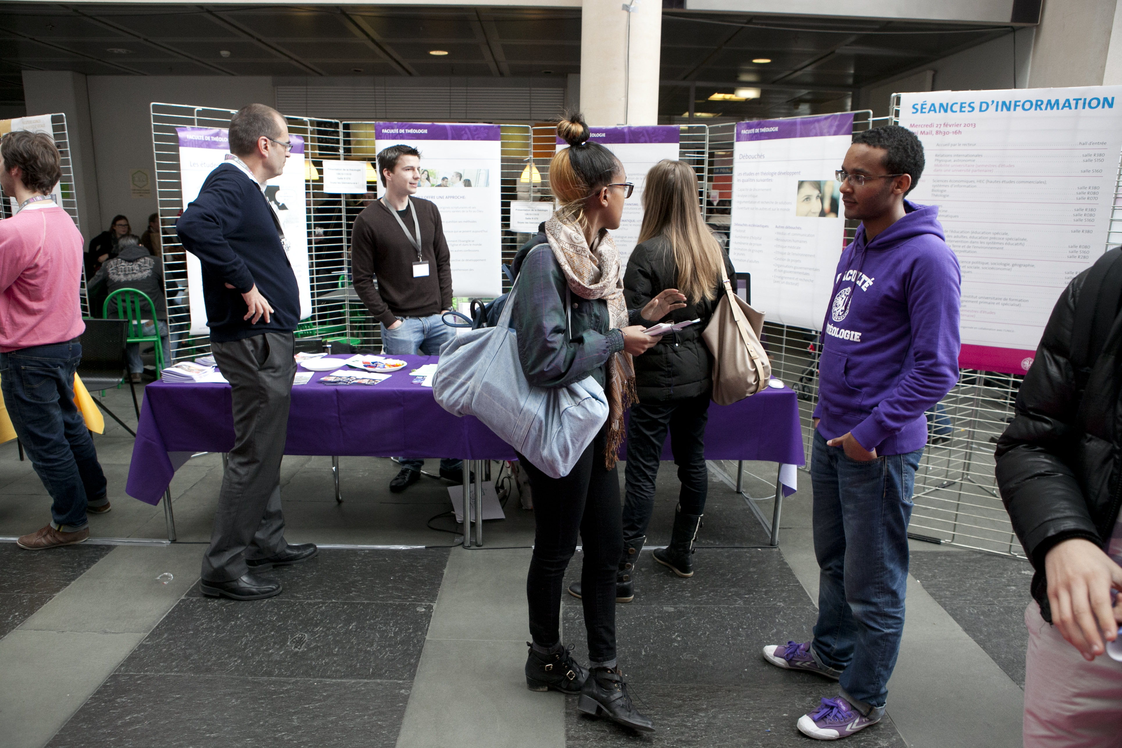 Journée d’accueil des collégiens à Uni Mail. Stand de la Faculté de théologie.