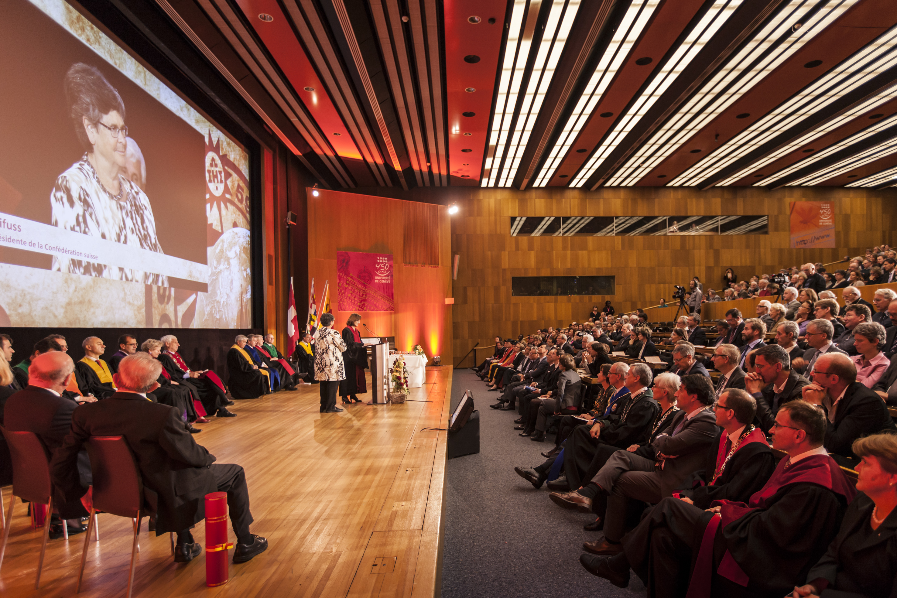 Journée officielle de l'Alma mater, cérémonie du Dies Academicus 2013 sur le thème « Globalisation et droits humains ». Remise de la médaille de l'université à Madame Ruth Dreifuss, ancienne présidente de la Confédération suisse.
