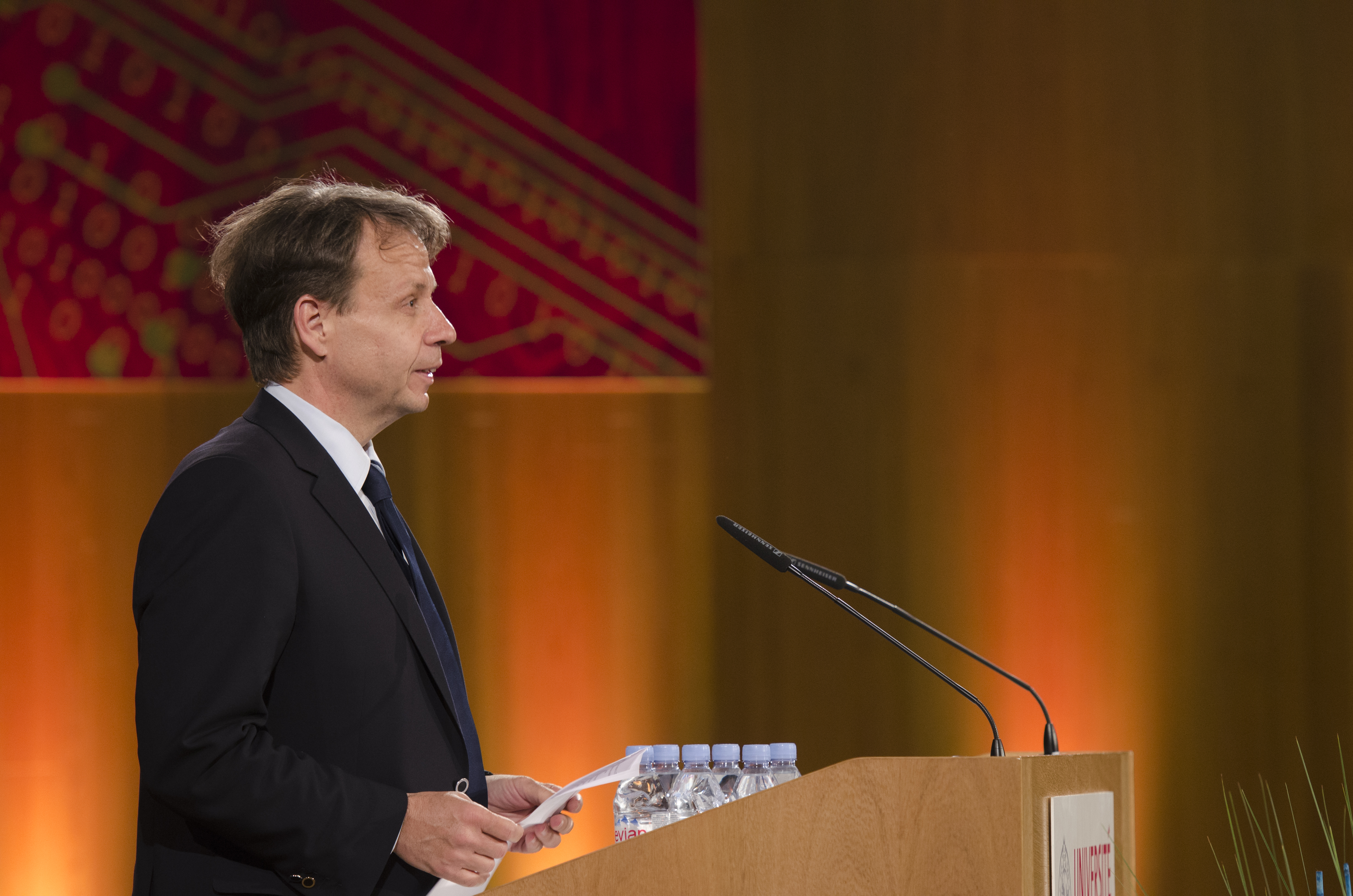 Soirée inaugurale du festival Histoire et Cité, rencontres de Genève sur le thème «Construire la Paix» en mai 2015: intervention de Gilles Marchand, directeur de la Radio télévision suisse.